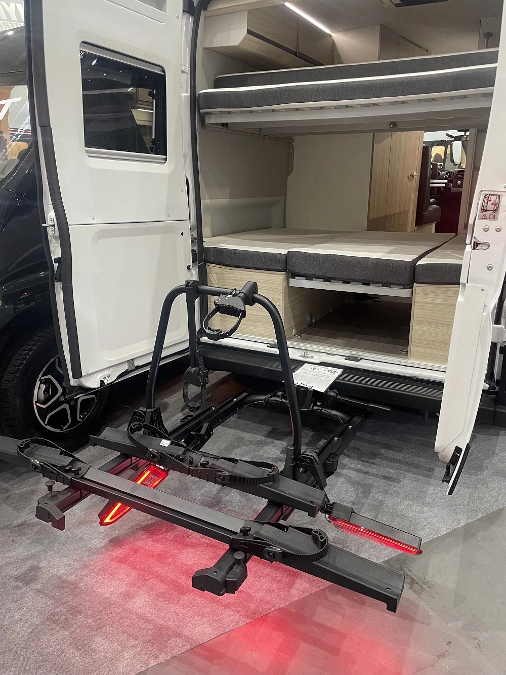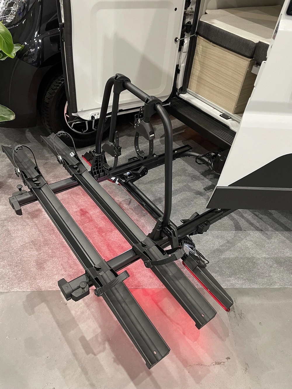 - Unikátní výsuvný mechanismus namísto sklápění nabízí kompatibilitu a přístup k zavazadlům i pro karavany, dodávky a MPV vozidla s vertikálním otevíráním zadních dveří.