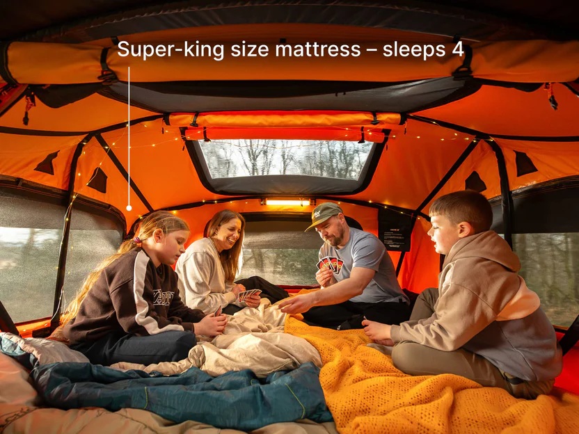 Das königlich geräumige TentBox LITE XL Dachzelt mit einer großen Matratze für 4 Erwachsene gehört zur neuesten Modellreihe. Dank verbesserter Materialien, einer komfortableren Matratze, eines abnehmbaren Daches mit zwei Dachfenstern und einem schnellen Aufbau in nur 5 Minuten ist es ein vielseitiges und durchdachtes Dachzelt, bereit für neue Abenteuer.