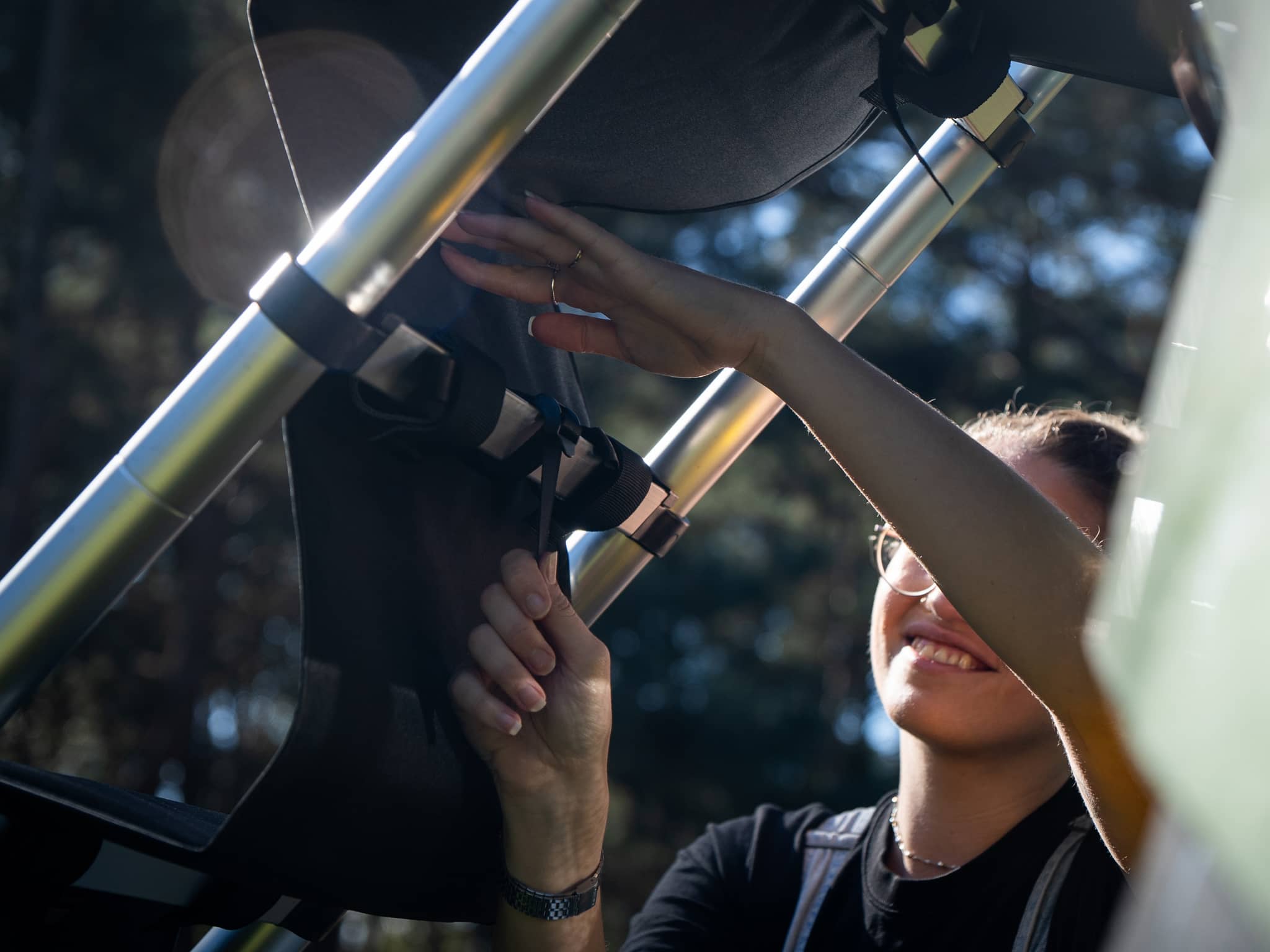 - Rögzítőpántok, beleértve a cövekeket is, a stabilitás biztosításához és a napellenző rögzítéséhez