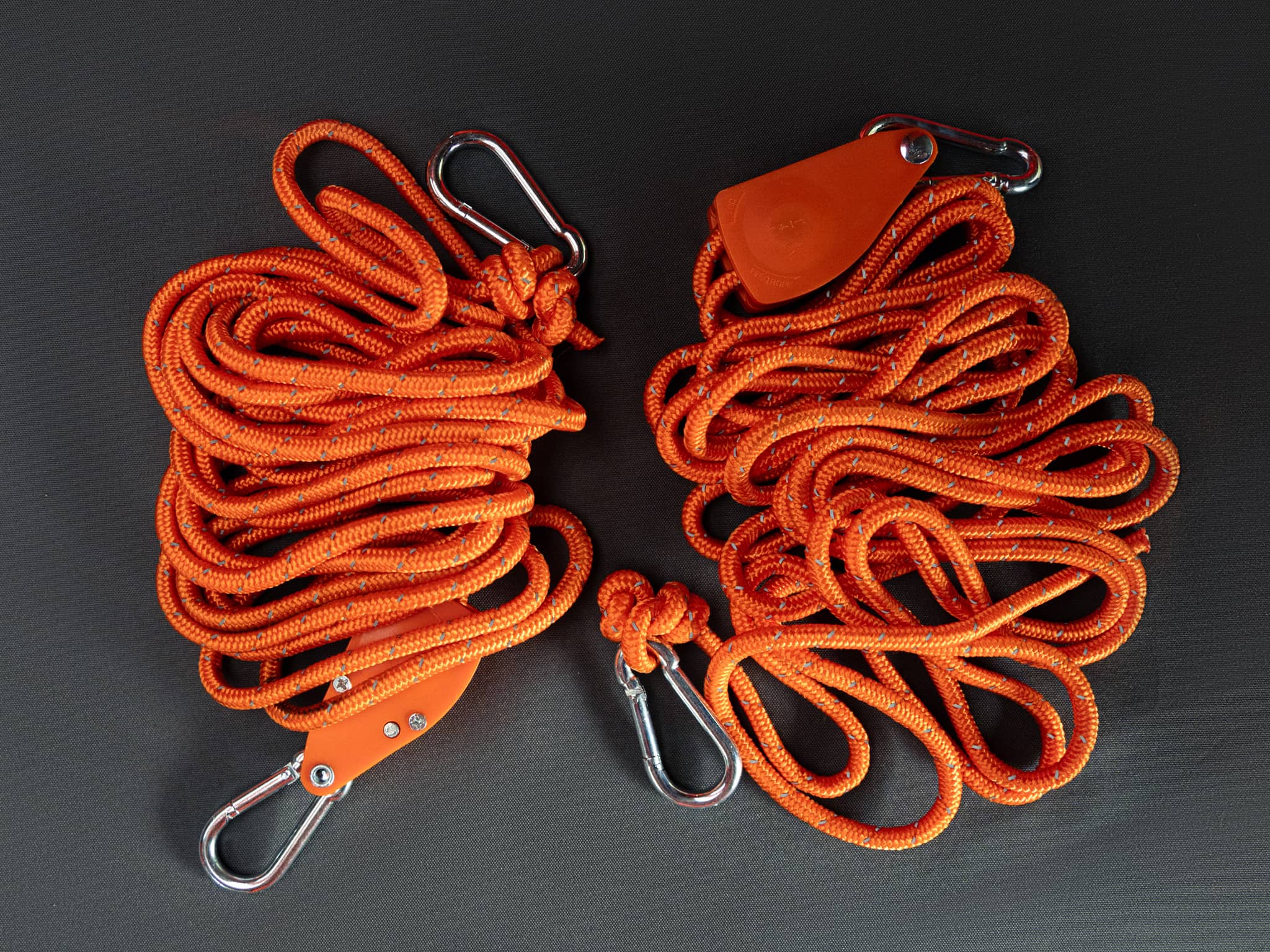 Trakovi Tentbox GUY z raglnim vitlom se uporabljajo za pritrditev avtomobilskega šotora Lite 2.0 ali XL pri kampiranju v močnem vetru. V standardnih pogojih trakovi niso potrebni. Trakovi so pakirani v parih po 2.