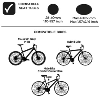 - Sedadlo sa dá namontovať/odmontovať z bicykla v priebehu niekoľkých sekúnd vďaka univerzálnemu rýchloupínaciemu držiaku, ktorý je vhodný pre väčšinu rámov bicyklov (okrúhle rámy s priemerom 28 – 40 mm a oválne rámy s maximálnym priemerom 40 x 55 mm).