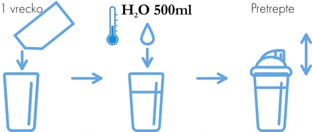 - Stačí rozpustiť jednu odmerku (dodávanú spolu s produktom), približne 30 gramov, v 500 ml vody a nápoj je hotový. Keďže je nápoj založený výhradne na dehydrovanom ovocí a je 100% prírodný, je vhodné pred konzumáciou ho vždy dôkladne pretrepať, aby sa rozpustené ovocie neusadilo na dno fľaše.