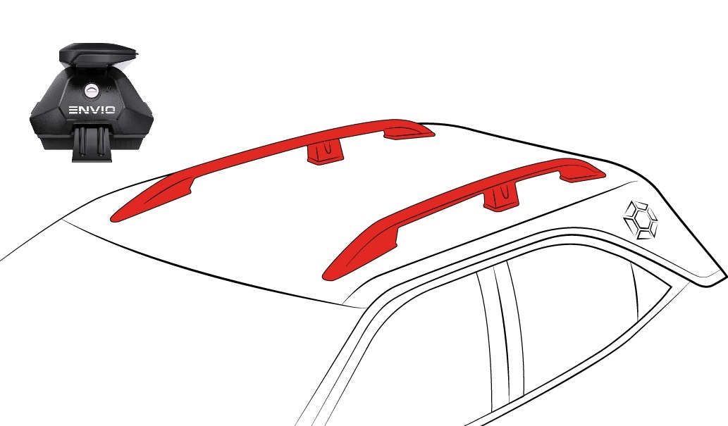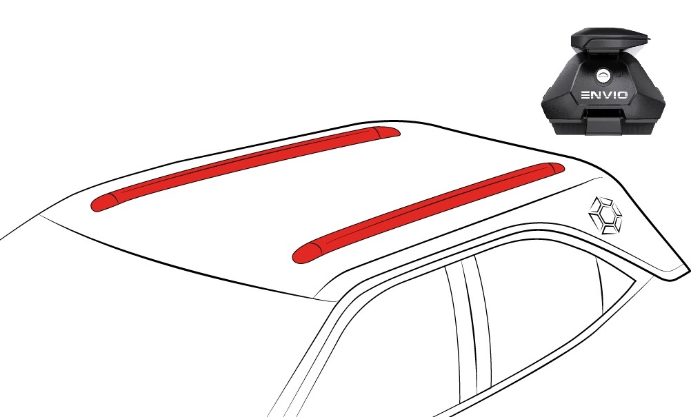Envio EN120 je špecifický strešný nosič vhodný pre vozidlá s integrovanými (uzavretými) a otvorenými lyžinami (spony pre oba typy sú súčasťou balenia)